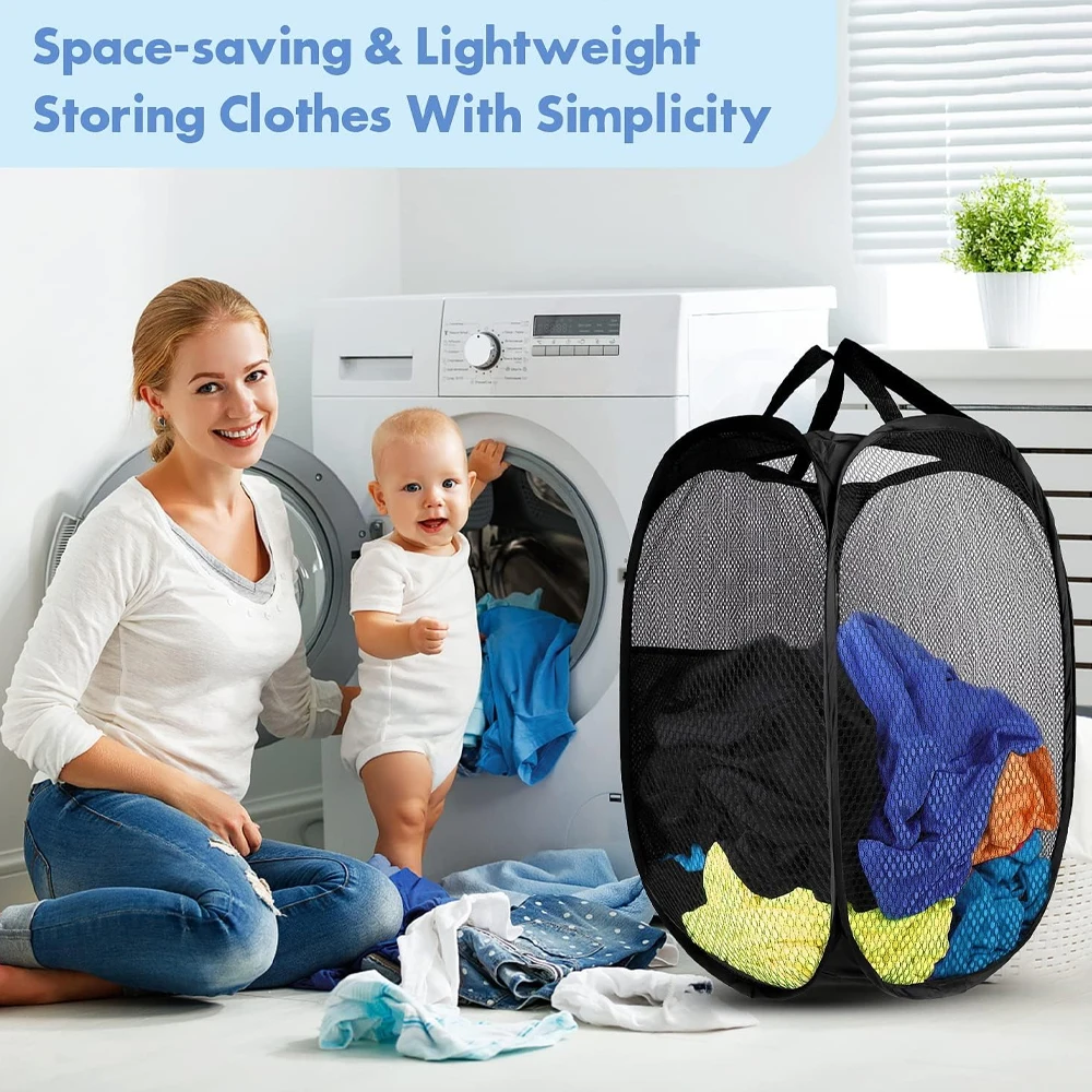 1-10Pcs Collapsible Laundry Basket Dirty Clothes Mesh Pop Up Hamper Storage Basket Toy Storage Bag for Home Bathroom Dorm Travel