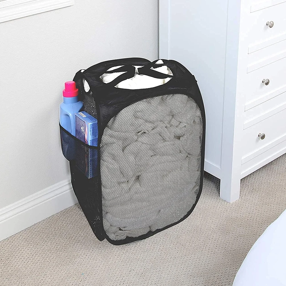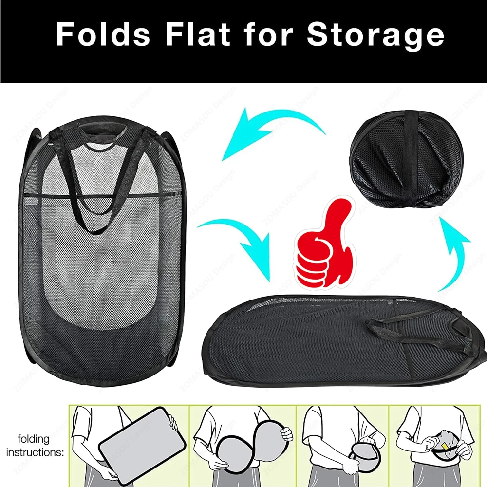 Mesh design, durable handle: Mesh pop-up laundry basket, mesh design helps enhance air circulation and prevent odors, durable handle facilitates transportation of clothes during pop-up basket travel, you can use it in the bedroom, bathroom, dormitory or travel